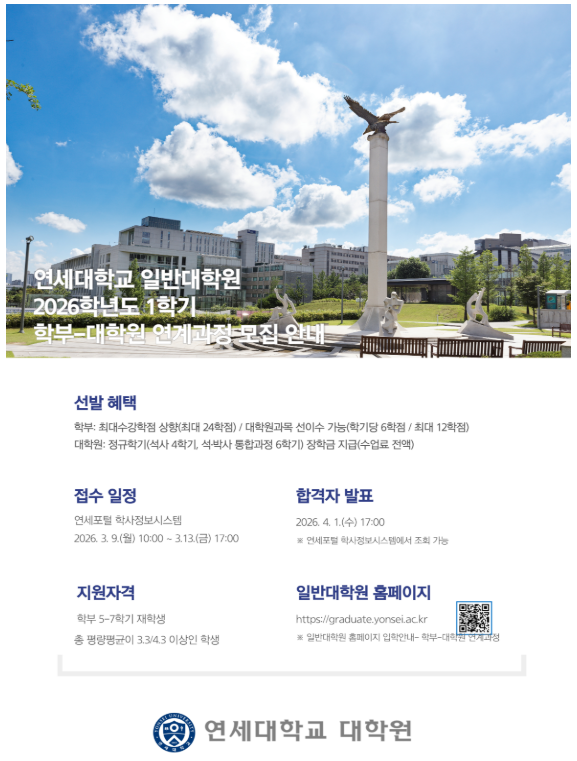 2026학년도 1학기 학부-대학원 연계과정 선발 안내